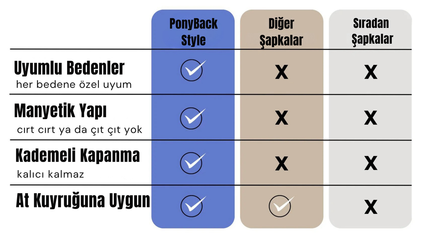 Pony Back Style, her saç modeline uyum sağlayan manyetik açılım tasarımıyla özgürlük sunar.